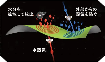 POLARTEC® POWER DRY®は、ベースレイヤーに使用される吸汗速乾性に優れた素材です。二重ニット構造によって1本1本の繊維が効率よく機能。アクティビティ中に体から出た汗を素早く吸い取り、生地の外側へ移動させ、拡散・蒸発させます。あらゆるアクティビティのベースレイヤーとして快適性を維持し、厳冬期の汗冷え防止にも効果的な素材です。